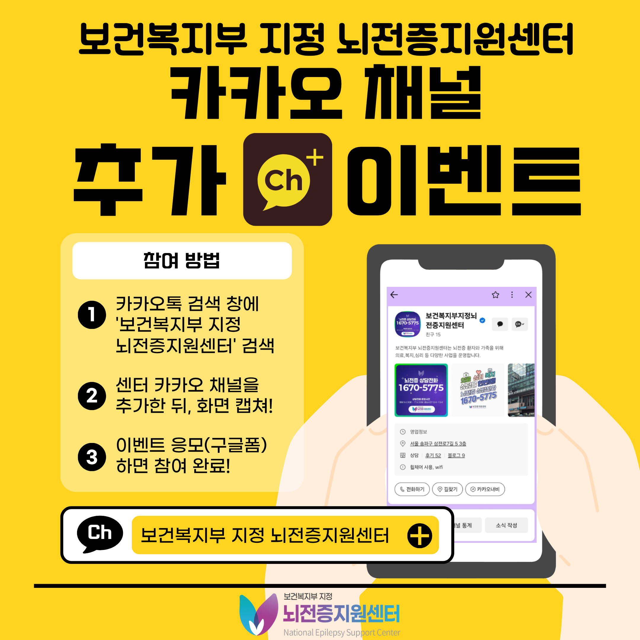 보건복지부지정 뇌전증지원센터 카카오 채널 친구 추가 이벤트 참여 안내
