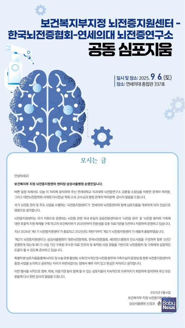 손영민 뇌전증지원센터장은 "첨단 의학 기술의 발전과 함께 사회적 인식 개선과 제도적 지원이 병행될 때, 뇌전증 환우와 가족들의 삶의 질이 실질적으로 향상될 수 있다"며 "이번 심포지엄이 의료계·학계·정부·환우단체가 함께 손을 맞잡는 출발점이 되기를 기대한다"고 전했다.